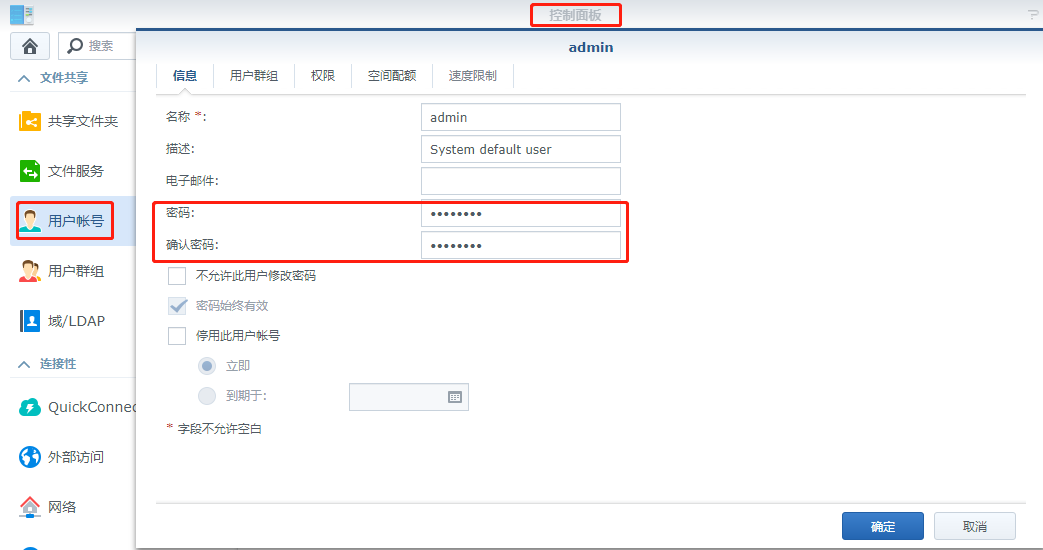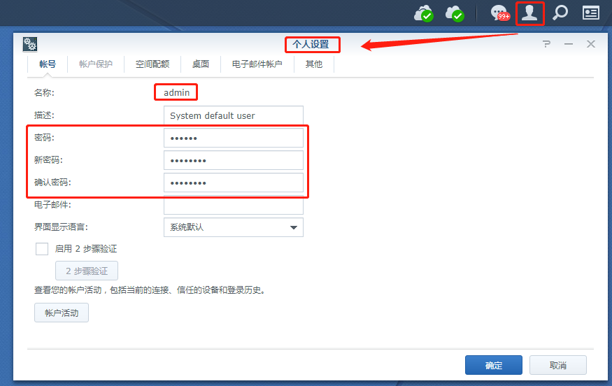 然后在個人設置這里才可以為admin設置其他密碼,默認空密碼是不行的。